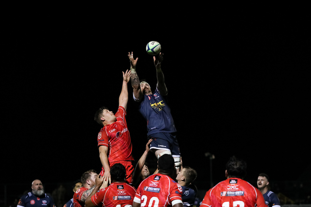 Finally getting some go-forward ball, the USA Military came close to scoring. A grubber through from flyhalf Cody Melphy was chased by Colin Argue, Niko Spino, and Mattie Tago. The ball was toed ahead and Spino seemed close to scoring, but the ball rolled dead.